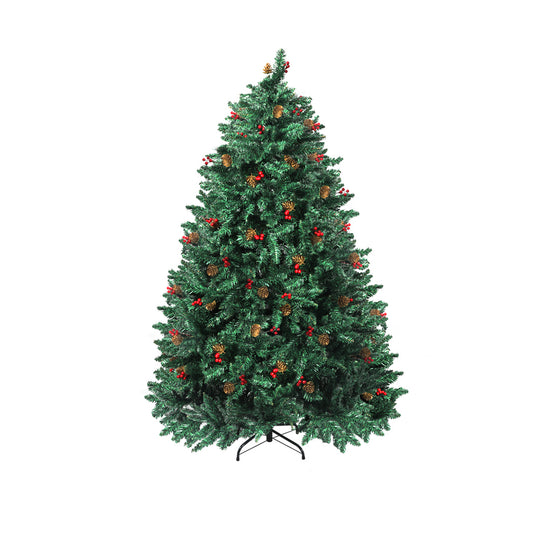 Jingle Jollys 2.1M Christmas Tree with Pine Cones Red Berries Prelit LED Warm Lights