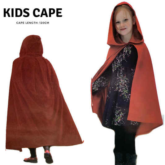 Kids Cape Cloak Hooded Robe Halloween Vampire Witch Wizard 120cm Hood - Red