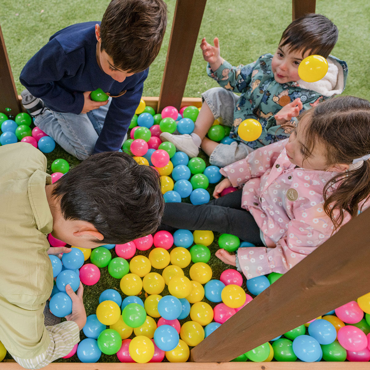 The Armadale Play Centre is the ultimate backyard adventure hub, featuring an architecturally unique curved swing beam and monkey bars combo between two separate towers. The dual 2.2m wavy slides is perfect for kids to race each other to the bottom and then race back up on the abseiling rope and rock-climbing wall. With three swing positions, including two swing seats and a trapeze, the Armadale caters to active play. Sourced from sustainable timber and treated for durability, it meets strict Australian standards, ensuring a safe and eco-friendly play experience for kids.