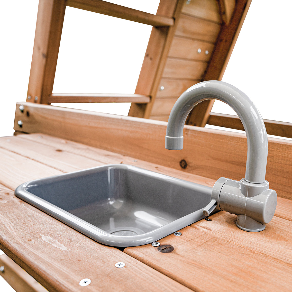 - Lower hideaway area with bench/play kitchen