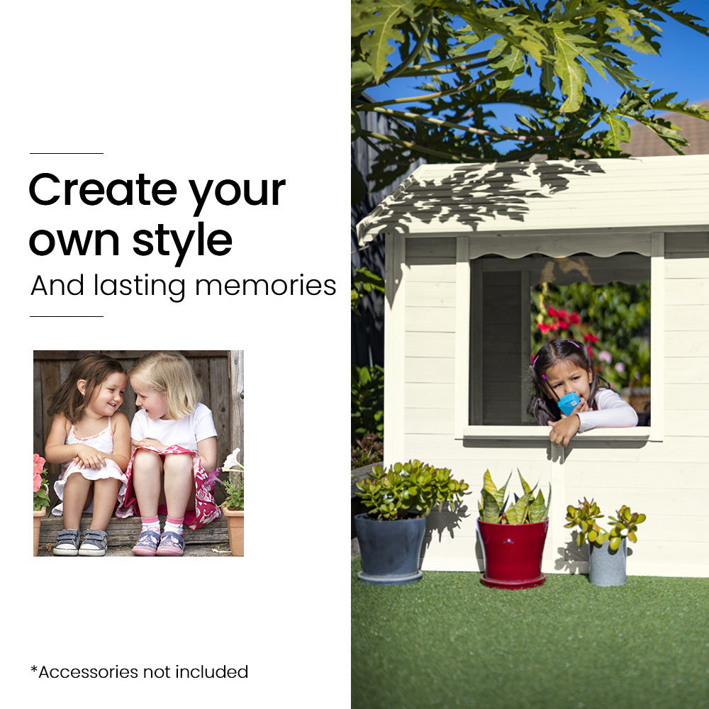 Join the global craze and truly make your mark on your Rovo Kids Cubby House - DIY style! Readily customisable, tap into your inner creativity - there are endless possibilities at your disposal! Create a dream castle for your own little royalty by painting and decorating their cubby with shades of white and gold, or create a home-business experience for your little ones serving you from their very own shop front! Mix and match your style to the season or holiday celebration; a pool house in summer or a winter wonderland log cabin complete with fairy lights. Unleash your imagination! With great design and curb appeal to start you off right, the choice is yours, and you can continue to customise your new Rovo Kids Wooden Cubby House as your child grows.